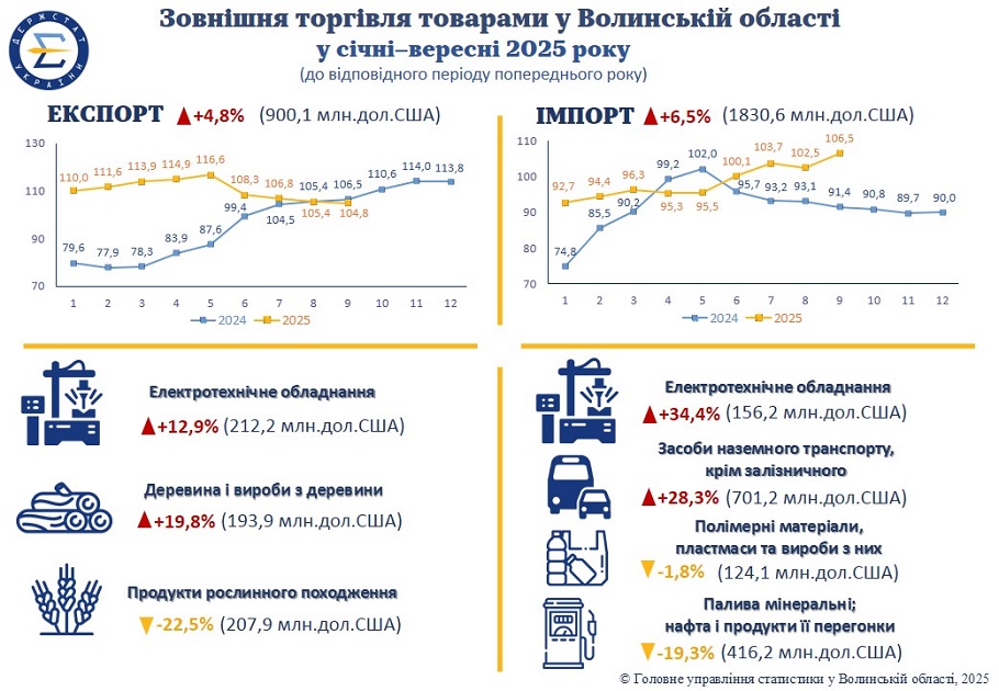 - Підготовлено інфографіку «Зовнішня торгівля товарами у Волинській області у січні-червні 2025 року»